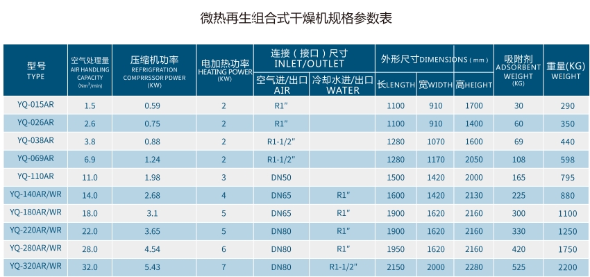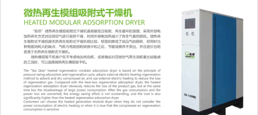 微热干燥机主要是来源于外部少量电能和低余热,通过嵌入式电加热元件实现,将再生气流加热50-120℃的温和,远低于传统热再生的200℃以上。例如,在处理量为10Nm³/min的系统中,传统方式需15kW以上功率,而微热再生仅需3-5kW,以精准能量改变吸附平衡。此外,在能源集成系统中,“微热”也可来源于空压机余热、低温蒸汽或热水等,实现与全厂能量网络的高效融合