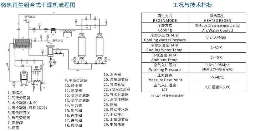 2. 减小设备尺寸与再生气/能耗:由于负荷降低,后置吸附式干燥机的规格可以选得更小,所需的吸附剂填充量减少,相应的,其再生时消耗的压缩空气或加热功率也同比减少。